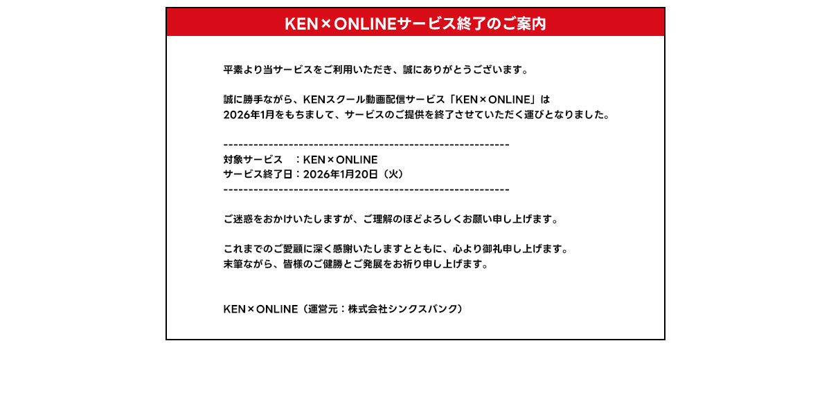 KEN×ONLINEのトップページから視聴したい動画をお探しください。 -